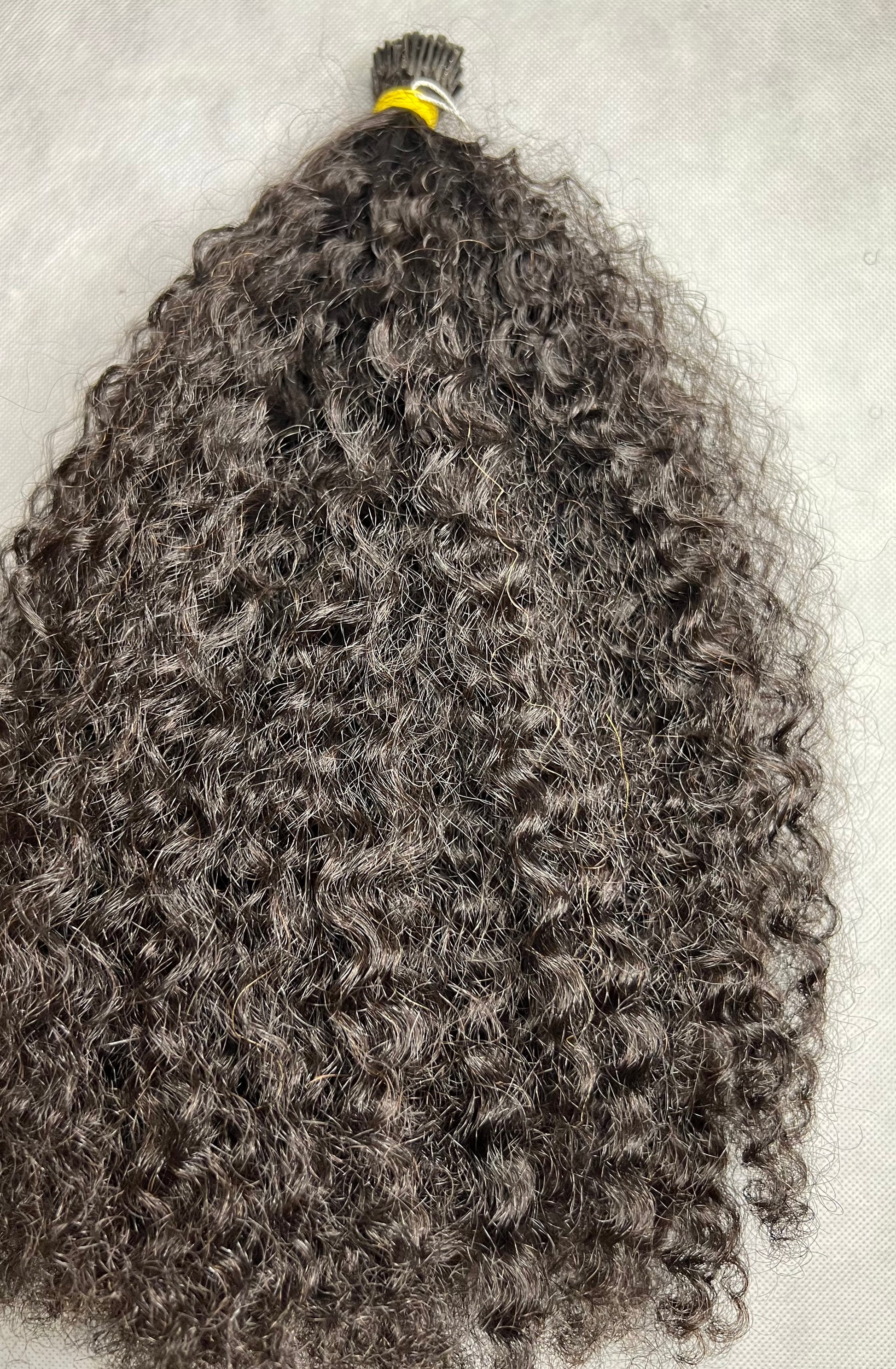 Our Soft Kinky Curly blends perfectly with 3a 3b 3c semi tight curl patterns and coarse textured hair. 100-120 pieces per bundle. 1-2 bundles needed for a natural look, hair comes in a natural brown color but can be colored and color of your choice.